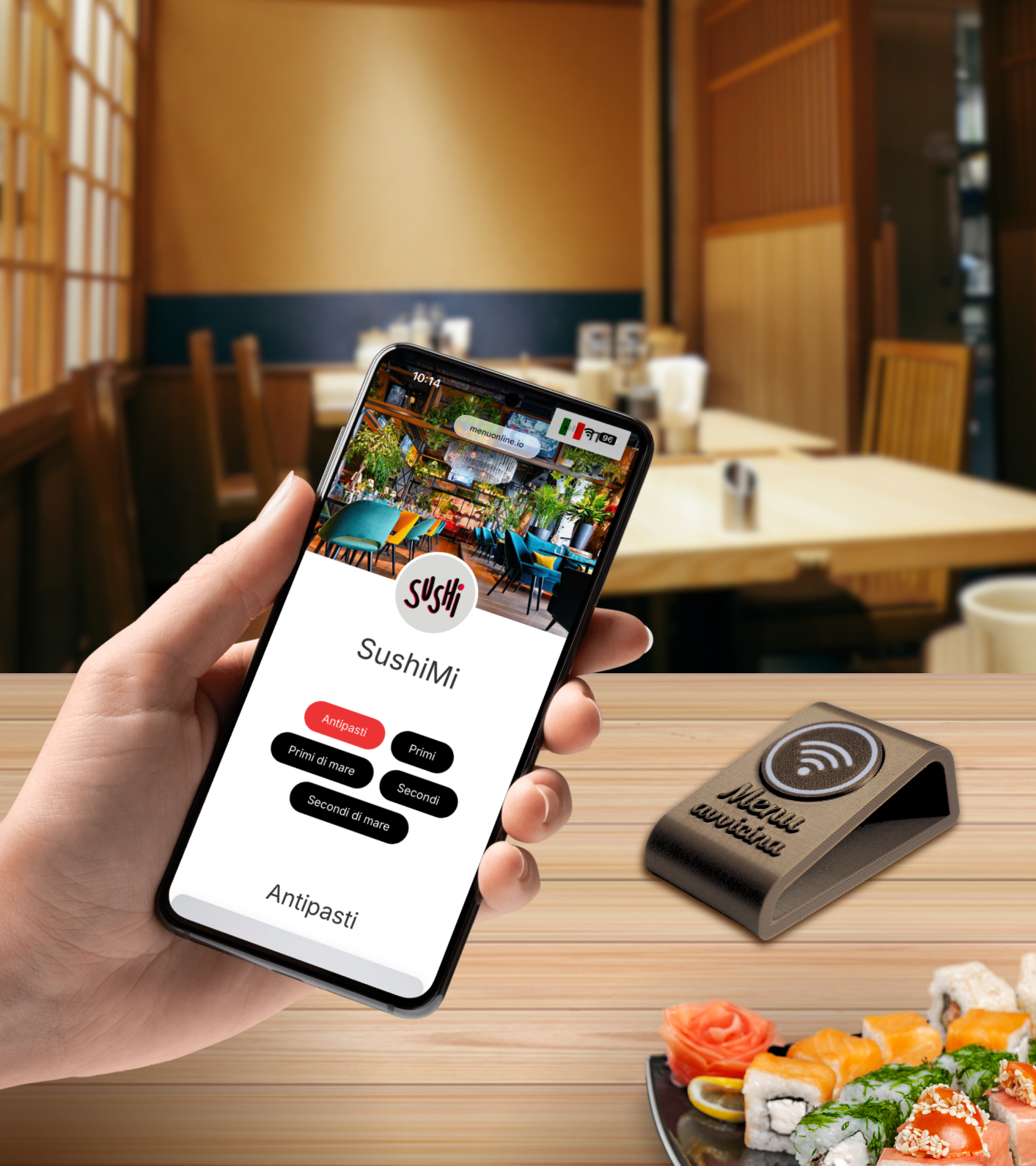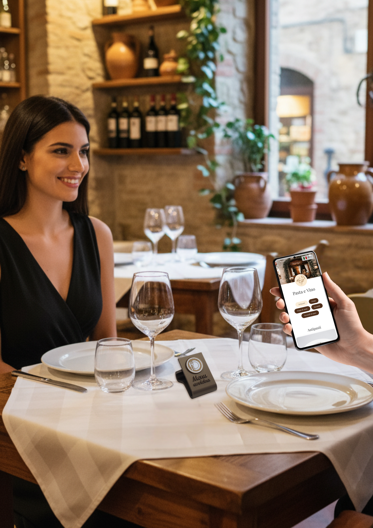 4️⃣ Il cliente tocca la tag touch con il suo smartphone e vede il menu subito sul proprio dispositivo
