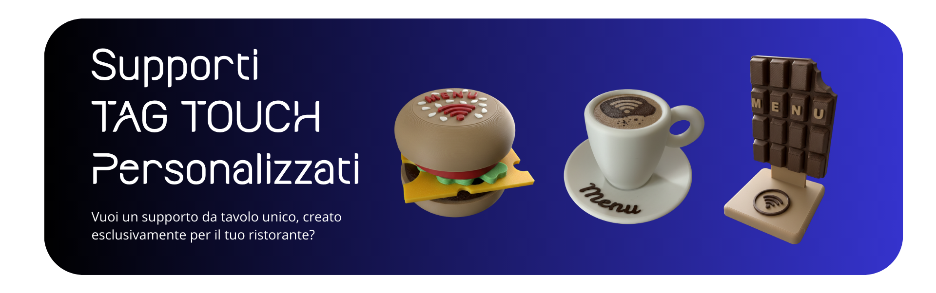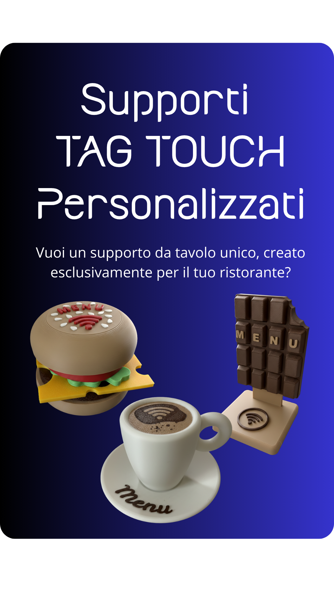Dì addio ai vecchi menù di carta! Supporti da tavolo TAG TOUCH, basta un tocco e il menù si apre subito sul tuo telefono.